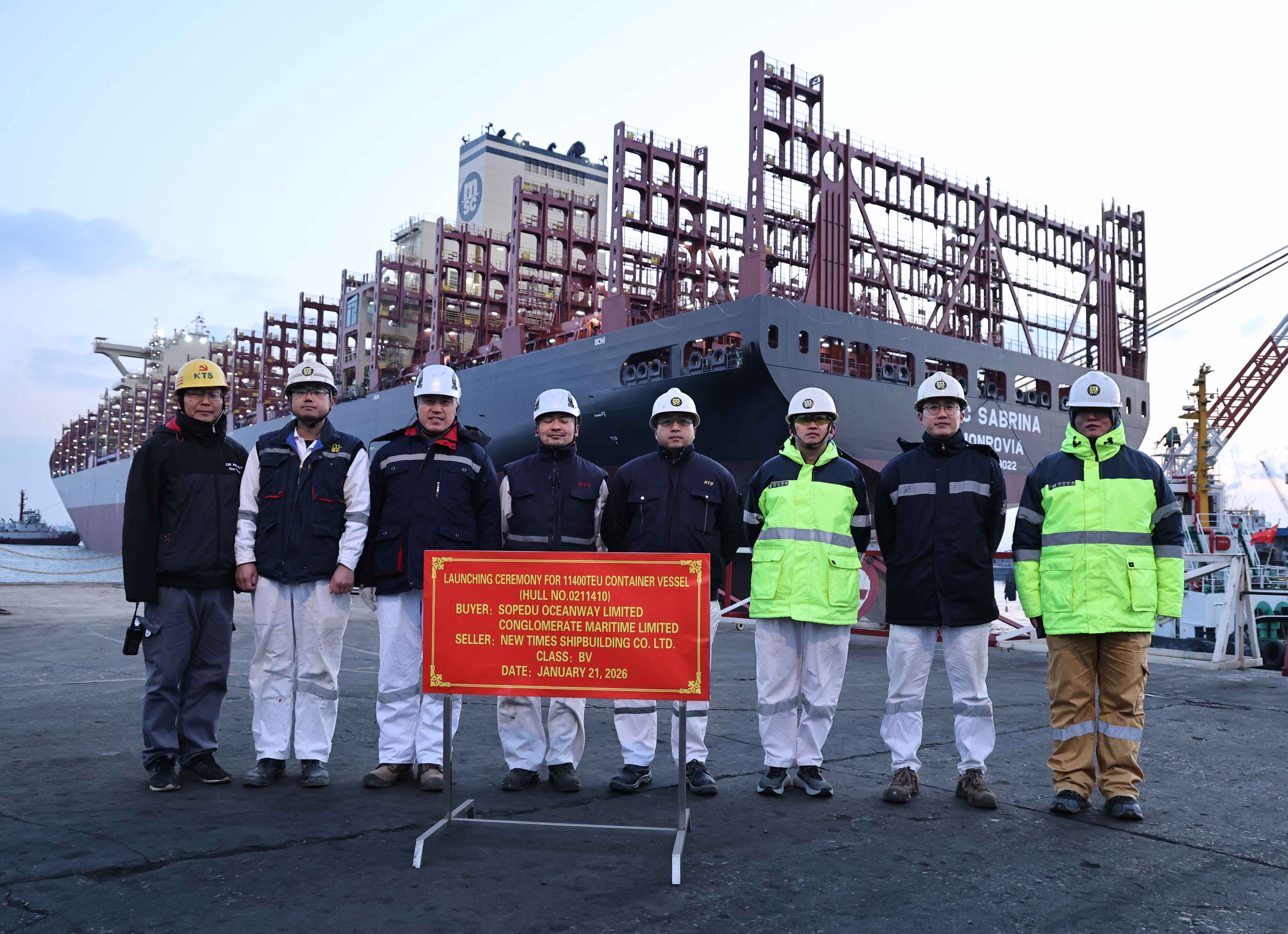 On January 21, 2026, the launching ceremony of 10# 11,400 TEU Container Vessel bearing builder's hull number 0211410 was carried out successfully by New Times Shipbuilding Co., Ltd. The representatives from MSC site office, BV classification society and shipyard were present and jointly witnessed the events.