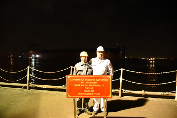On November 4, No.20 208,000 DWT Bulk Carrier launched successfully from NTS Drydock. Our Project Manager Mr. Lu Jiankun and Mr. Han Min Goo from the Owner POLARIS attended and witnessed the ceremony together.