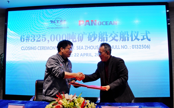On April 22, 2021, the closing ceremony for 6# 325,000 DWT Ore Carrier was held at the meeting room on 8th floor of New Times Office Building. Our Executive Deputy General Manger Mr. Zhang Yuyong, the representive from Pan Ocean Mr. Nak Jin Choi attended this ceremony. The vessel was smoothly and successfully delivered by us and accepted by Pan Ocean.