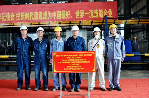 On September 10, 2024, the steel cutting of one 299,500 DWT Crude Oil Tanker bearing builder's hull no.0330001 has been carried out successfully by New Times Shipbuilding Co., Ltd.. The representatives from shipyard, Dynacom Site Team and ABS classification society attended and witnessed this event.