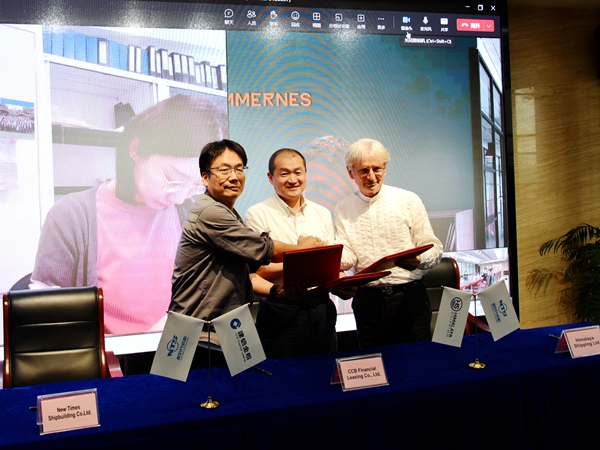 On July 13, 2023, the closing ceremony for 37# 210,000 DWT Bulk Carrier with Builder's Hull No.0120837 was held at the meeting room on 8th floor of New Times Office Building. Our CEO Mr. Liu Haijin, the representatives from the Owner and the representatives from CCB Financial Leasing Co., Ltd. were present. Mr. Zhang Yuyong Executive Deputy General Manager of New Times Shipbuilding Co., Ltd., Mr. Davor Radic on behalf of the Owner, Mr. Zhao Weiming, General Manager of Ship Leasing Dept. of CCB Financial Leasing Co., Ltd. signed the delivery documents. The vessel was smoothly and successfully delivered by us and accepted by the Owner.