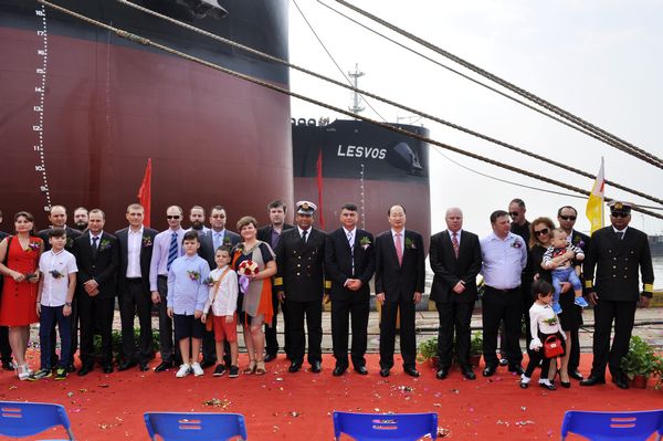 On September 5, the naming ceremony of No.15 and No.16 157,500 DWT Crude Oil Tankers was held ceremoniously in our shipyard and  the vessels were named as "LESVOS" and "PSARAI" respectively. Executive Vice President Mr. Zhang Yuyong conducted this ceremony, our CEO Mr. Liu Haijin and representatives from the Class and Shipowner attended this ceremony.
