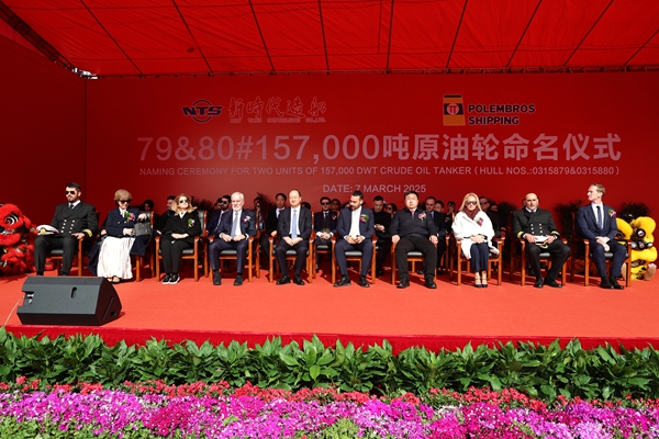 On 7 March, 2025, we held naming ceremony for two units of 157,000 DWT Crude Oil Tankers with Builder's Hull Nos.0315879 and 0315880. Our CEO Mr. Liu Haijin, Executive Deputy General Manager Mr. Zhang Yuyong, Deputy General Manager & Executive Director Mr. Yuan Heng, Principal of Polembros Shipping Limited – Mr. Polemis Leonidas, CEO of Polembros Shipping Limited – Mr. George Vakirtzis and other VIP guests attended this ceremony.