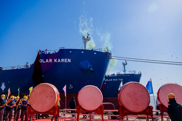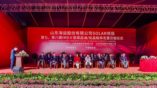 金桂飄香,碩果盈盈,在這收獲的季節(jié),企業(yè)迎來了26#27#50000噸IMO Ⅱ型油化品船命名暨交付,這標(biāo)志著公司與山東海運(yùn)“強(qiáng)強(qiáng)聯(lián)合、做優(yōu)做強(qiáng)”Solar合作項(xiàng)目——8艘IMO Ⅱ型油化品船完美收官。