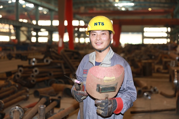 聞炳紅,1997年,職校畢業(yè),2002年進入公司,成為一名焊接學徒工,為早日學有所成,他心無旁騖地跟在師父后面,一招一式地看,一點一滴地學,握焊鉗的手懸麻了,蹲著的腰腿酸了,兩條手臂被飛濺的焊花、滾燙的藥渣灼得傷痕累累,強烈的焊光刺得眼腫淚流,正是這“痛并快樂著”的艱苦訓練和日復(fù)一日地觀察琢磨,短短數(shù)月他就基本掌握了一般的焊接技術(shù)。俗話說:師父領(lǐng)進門,修行在個人。職校的學習經(jīng)歷以及在機械識圖方面的優(yōu)勢,又讓聞炳紅自信倍增,懷揣著“既懂識圖又會燒焊”的夢想,愛上了焊接這個職業(yè),焊接技藝日益長進。