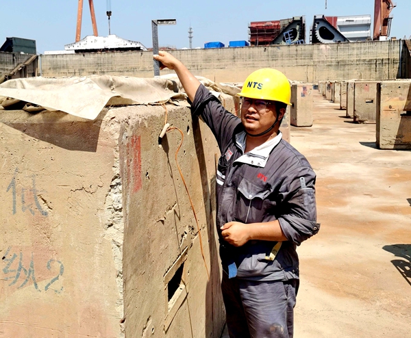 進入生產(chǎn)車間,映入眼簾的是一張張汗如雨下的面孔,其次看到的是有條不紊的生產(chǎn)景象,廠房作業(yè)區(qū)內(nèi)環(huán)境,僅室內(nèi)溫度就有40℃左右,每一位員工身上衣服如同水洗,但高溫始終未影響新時代造船員工的工作熱情,只看他們動作麻利,操作謹慎,嚴格工藝流程要求操作,把握好各個細小環(huán)節(jié),確保每一個成品的質(zhì)量,用實際行動展示著“戰(zhàn)高溫 斗酷暑 守崗位 促生產(chǎn)”的錚錚誓言。工服上的坨坨汗?jié)n,臉上快速流淌的汗水,就是他們實現(xiàn)自我價值的有力證明,他們是可敬可贊的,與烈日高溫比熱情,用忠誠執(zhí)著促生產(chǎn),用辛勤汗水書寫著新時代造船人別樣的美。