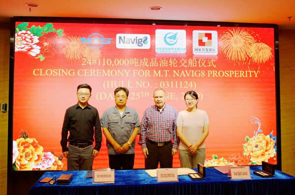 6月25日,24#110000噸油船簽字交船儀式在八樓會(huì)議室舉行,該船正式交付船東。
