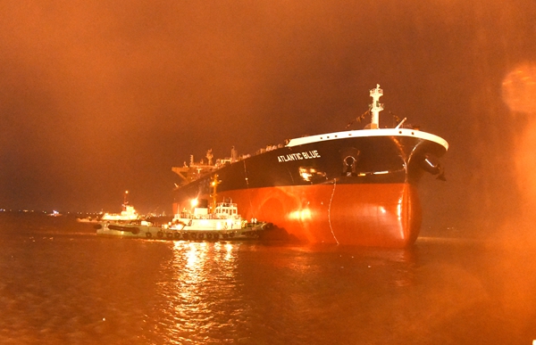 4日清晨,公司1#塢區(qū)域,廣大員工冒著大雨,有序開展船舶下水工作,隨著海事拖輪緩緩發(fā)力,25#111000噸油船駛離船塢,順利下水。下午4點,3#63500噸散貨船也順利實現下水目標。