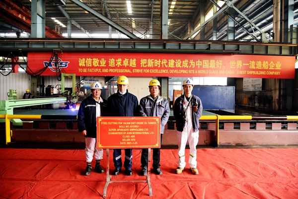 1月25日上午,公司在鋼加車間舉行船舶開工點火儀式,33#、52# 156500噸油船分別點火,正式開工建造。常務(wù)副總經(jīng)理張玉永、副總經(jīng)理朱韓鋼與新加坡船東Sentek Global Pte LTD.、希臘船東Avin International LTD.代表出席活動,見證船舶船體鋼板切割下料。