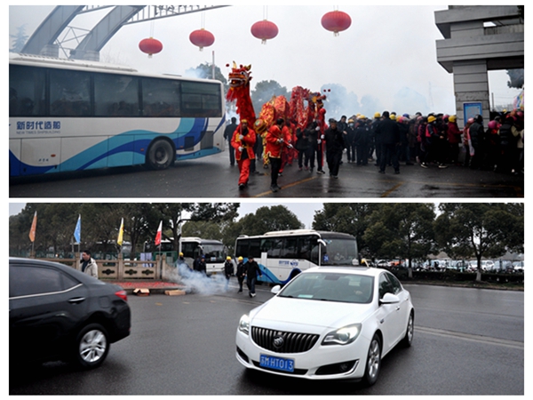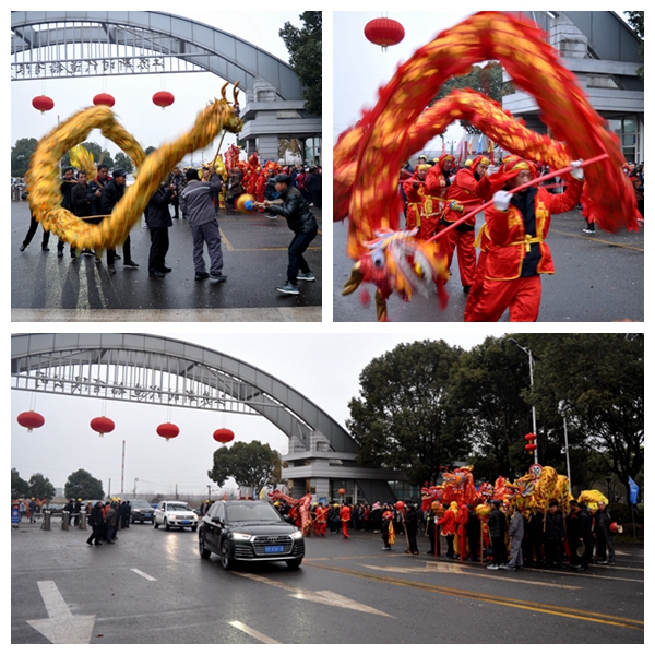 2月19日,農(nóng)歷正月初十,袁凱飛、朱炳康、劉海金、周燦榮、張玉永、袁衡等公司領(lǐng)導(dǎo)早早地等候在新區(qū)中門口,迎接度假結(jié)束回廠開工的員工們。