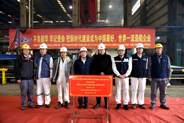46#50000噸Ⅱ類化學品船的船東是新加坡船東Navig8,目前該船東在我們企業(yè)訂制了6艘50000噸Ⅱ類化學品船,今天開工的是第一艘船舶。35#50000噸Ⅱ類化學品船的船東是國銀租賃,該船東目前在我們企業(yè)訂制了10艘50000噸Ⅱ類化學品船。
