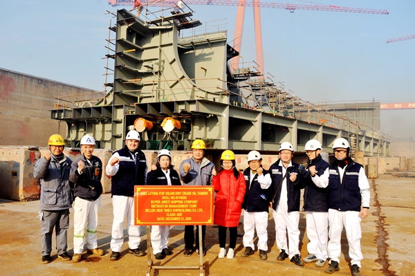 12月21日,35#36#156500噸油船進(jìn)塢合攏儀式在公司3#塢內(nèi)舉行,常務(wù)副總經(jīng)理張玉永與船東METROSTAR MANAGEMENT CORP.代表、ABS船級社代表等嘉賓共同出席活動,一起見證船舶船體開始合攏組裝。