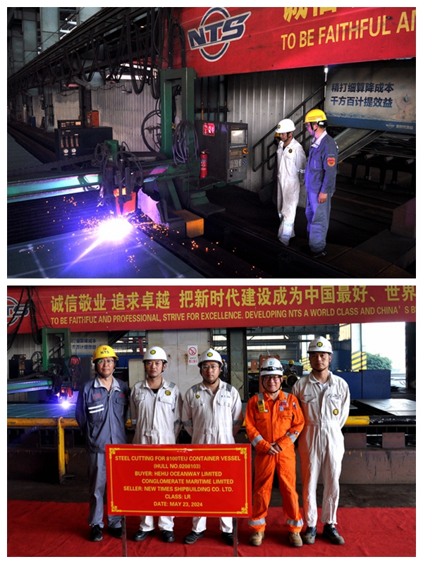 5月23日上午,公司在新區(qū)鋼加車間三跨舉行船舶點(diǎn)火開工儀式,3#9#8100箱雙燃料動力集裝箱船船體結(jié)構(gòu)件開始預(yù)制,生產(chǎn)管理部、質(zhì)量部、營銷部等相關(guān)部門負(fù)責(zé)人與船東CONGLOMERATE MARITIME LIMITED、LR&BV船級社代表參加活動。