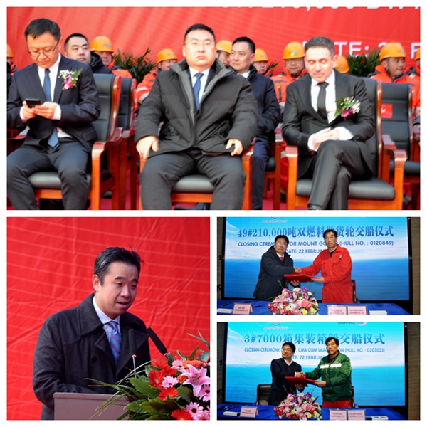 新春開工以來,公司全體員工秉持“開工即實(shí)干”的理念,迅速將激情化為行動(dòng)、用實(shí)干顯示決心,交出了一天兩船交付、兩船下水的新成績,讓新年“開門紅”跑出了“加速度”,又為2024年喜開新局獻(xiàn)上了一份隆重的賀禮。2月22日,3#7000箱集裝箱船完工交付、49#210000噸雙燃料動(dòng)力散貨船命名交付;4#7000箱集裝箱船、42#210000噸雙燃料動(dòng)力散貨船相繼下水,順利實(shí)現(xiàn)大節(jié)點(diǎn)目標(biāo)。