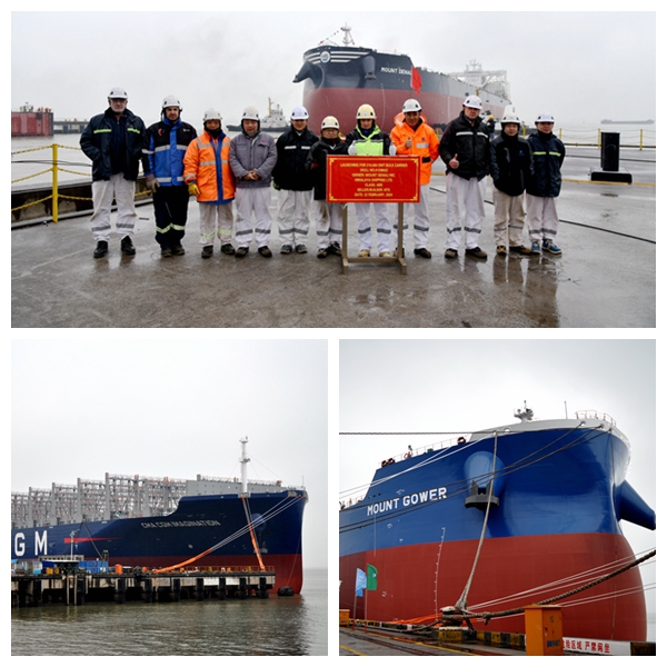 上午9:00,49#210000噸雙燃料動(dòng)力散貨船命名儀式在新區(qū)碼頭隆重舉行,公司領(lǐng)導(dǎo)劉海金、張玉永、袁衡、徐震宇等與船東EPS公司代表一起出席活動(dòng)。總經(jīng)理劉海金在致辭中表示,向各位來賓的到來表示熱烈的歡迎與衷心地感謝,自2019年與EPS簽訂了第一筆訂單到目前為止共簽訂了訂單31艘船舶,此次交付的是11艘210000噸雙燃料動(dòng)力散貨船系列船中的第10艘船舶。多年來,基于雙方互信互利的合作基礎(chǔ),彼此逐漸熟悉、不斷理解、增進(jìn)熱愛,期望在以后的合作中,繼續(xù)勠力同心攜手締造更多共商共贏、互利互惠的豐碩成果。在喜慶的氣氛中,49#210000噸雙燃料動(dòng)力散貨船被成功命名為“MOUNT GOWER”號。10:18,該船的簽字交付儀式在八樓會(huì)議室舉行,張玉永與船東EPS代表倪杰分別簽署交船文件,新船完工交付。