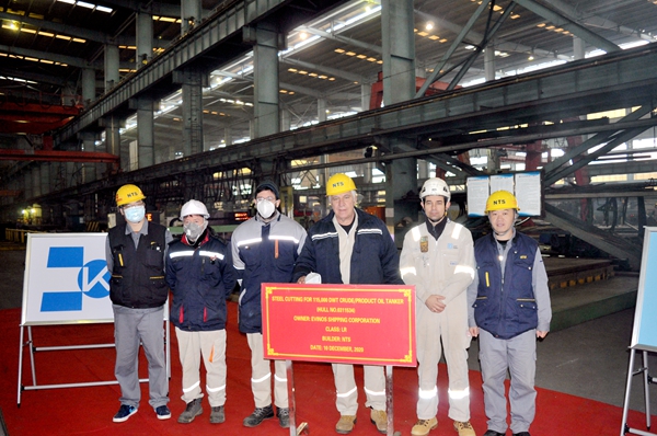 9:30,首先進行的是27#110000噸原油輪/成品油輪開工儀式。公司生產(chǎn)管理部陳月鋒部長與 EPS船東代表、ABS船級社代表共同出席開工儀式。此次開工建造是船東EPS公司訂制的4艘110000噸油輪系列船中的第三艘。該系列船舶船長249米,型寬44米,型深21.3米,設(shè)計吃水13.5米,結(jié)構(gòu)吃水15米,艙容128990立方米,載重量為110200噸。