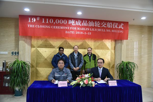 1月15日下午,公司舉行簽字交船儀式,19#110000噸成品油船正式交付,這是今年交付的第六艘船舶。