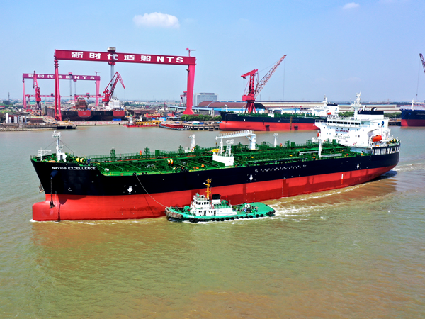 9月5日中午,51#50000噸Ⅱ類化學(xué)品船駛離新區(qū)舾裝碼頭,開始了它的首航之旅,該船成功交付英國船東Navig8運(yùn)營。