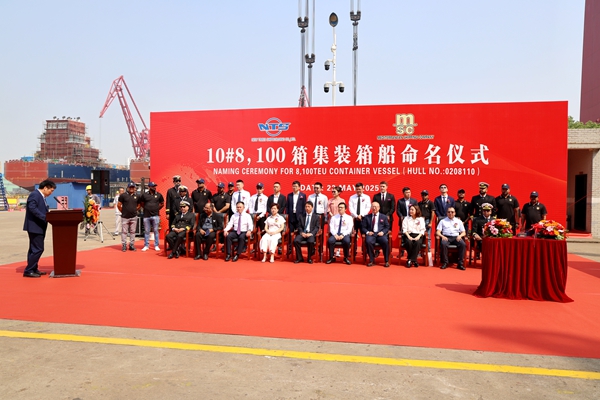 5月22日上午,公司舉行船舶命名儀式,10#8100箱LNG雙燃料動力集裝箱船成功命名為“MSC BENIN”號。
