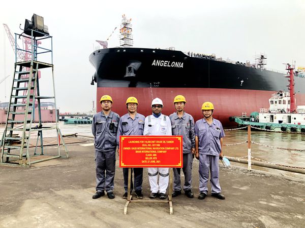 6月27日下午,公司3#塢區(qū)域內,9#、10#110000噸油船靜靜地漂浮在船塢內,等待著下水工作開始。下午4:00,船舶下水工作正式啟動,9#、10#110000噸油船相繼駛出船塢。船東沙特阿拉伯BIHAR公司代表、ABS船級社代表等在生產現場共同觀看船舶下水全過程,并與新船合影留念。