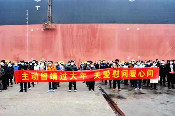 在“員工留靖過春節(jié)、非必要不返鄉(xiāng)”的倡議下,廣大外省籍員工積極響應(yīng),主動表示留靖過年,用實際行動為進一步鞏固來之不易的疫情防控成效作出新的貢獻,也為來年船舶生產(chǎn)建造早開工、早落實下好先手棋、打好主動仗。