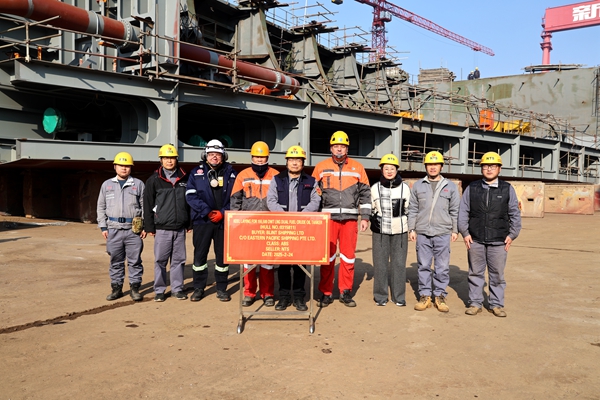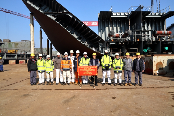 2月24日上午,公司在3#內(nèi)舉行船舶進(jìn)塢合攏儀式,11#69#155500噸LNG雙燃料動(dòng)力油船船體分段開始合攏搭載,常務(wù)副總經(jīng)理張玉永與新加坡船東EPS、希臘船東Capital代表分別出席活動(dòng)。