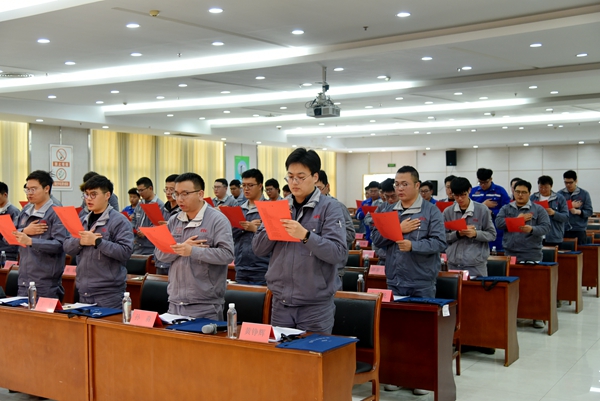 活動(dòng)中,劉海金、周燦榮為青年人才培訓(xùn)班銘牌揭牌。48名學(xué)員立下錚錚誓言:作為一名青年人才培訓(xùn)班學(xué)員,將充分利用培訓(xùn)機(jī)會(huì),努力提升自身思想素質(zhì)、專業(yè)技能和管理水平;嚴(yán)格遵守培訓(xùn)老師的教導(dǎo)和要求,積極參與討論和學(xué)習(xí)活動(dòng);學(xué)以致用,為企業(yè)的發(fā)展而努力奮斗,為建設(shè)百年新時(shí)代貢獻(xiàn)自己的力量。